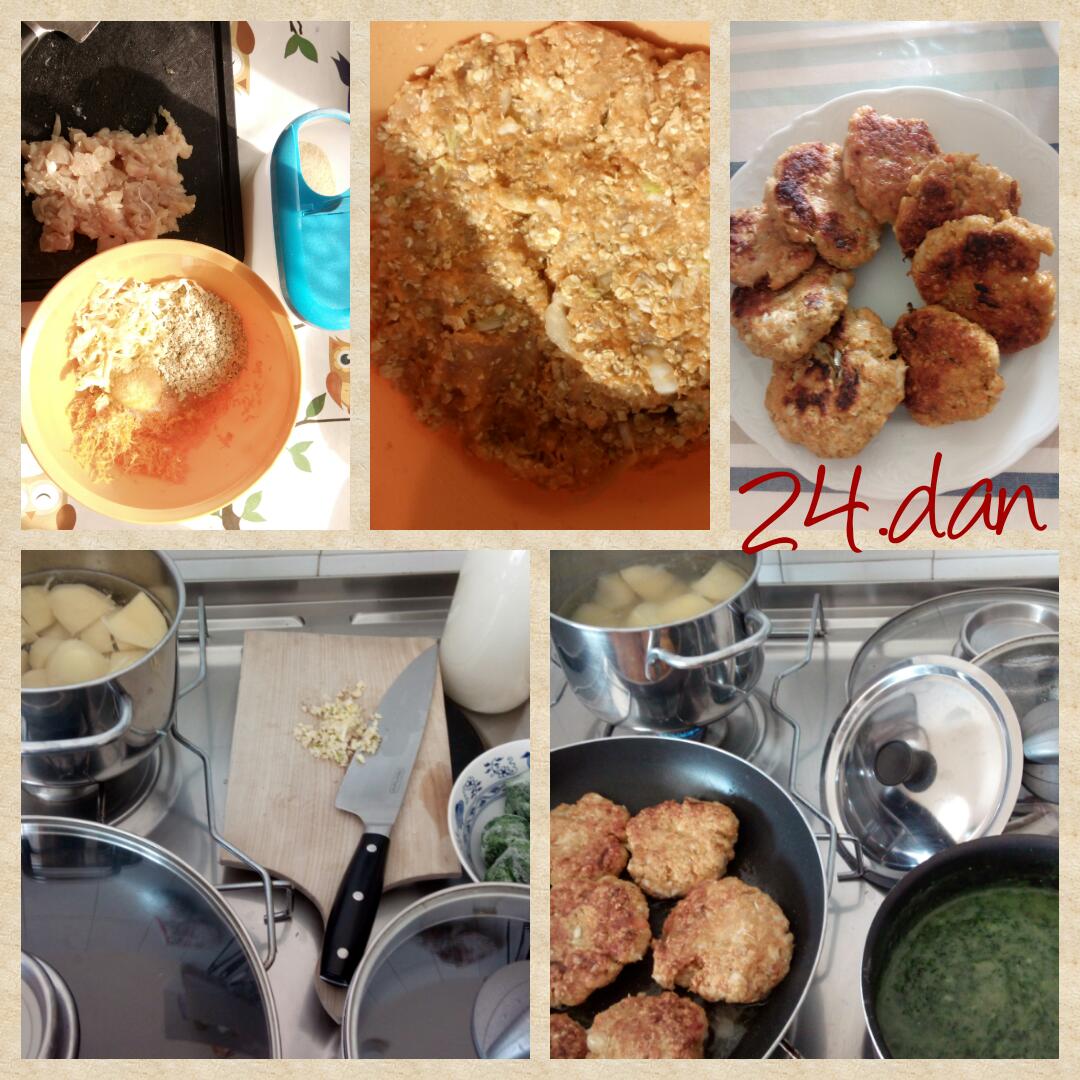 * Ovseni polpetki s piščančjim mesom in korenčkom: Piščančje meso sem drobno nasekljala, korenček naribala, narezala malo kitajskega zelja, dodala sem se 2 jajca, čebulo v prahu, sol in drobtine. Vse sestavine sem dobro premešala in dala za pol ure v hladilnik, nato sem oblikovala polpetke jih spekla.