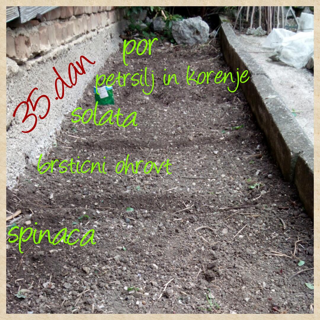 Medtem, ko se je druga runda perila sušila in tretja prala sem na vrtu na stransko gredico posejala por, petršilj, korenje, solato, brstični ohrovt in špinačo. Matej mi je nato pomagal zaliti gredco in pokriti s kopreno. Sedaj pa naj raste.