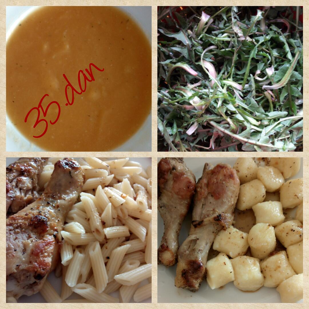 Kosilo je danes kuhal očka, jaz sem skuhala le bučno juho in oprala regrat.