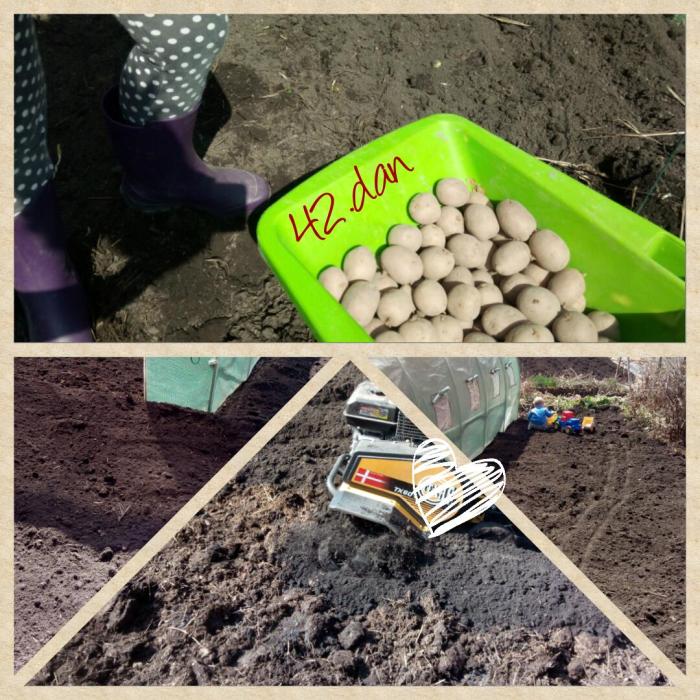 S skupnimi močmi smo danes prekopali vrt in posadili krompir. Hana si je na plavalnem tečaju priplavala še eno diplomo. Z Jurijem pa sva zameslila kruh.