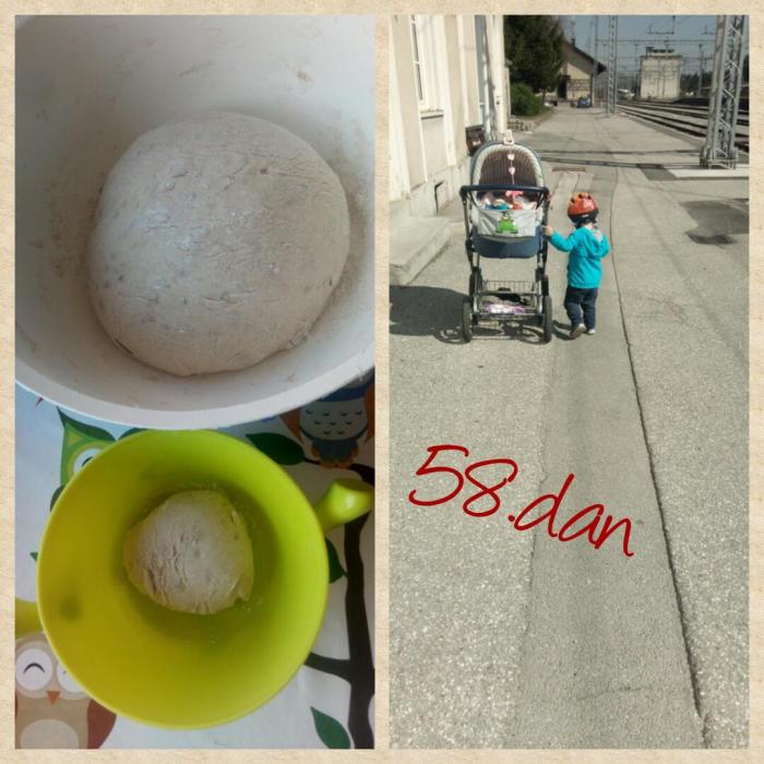 Ta teden bo spet pestro. š Doma bom imela mojega sineka. Tako da mi je danes zjutraj že pomagal zamesit kruh. Pred spanjem pa smo Å”li Å”e vlak pogledat.