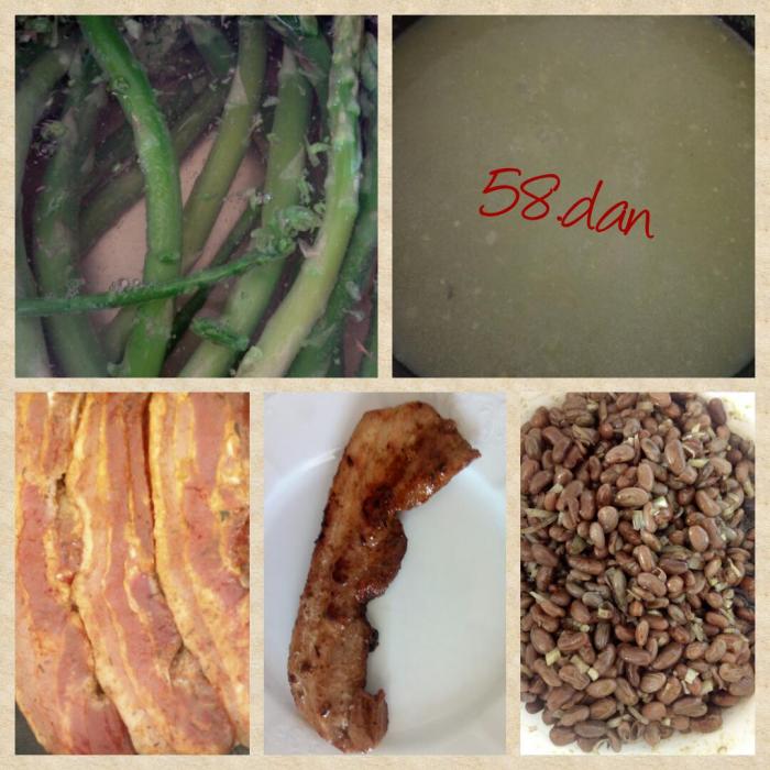 Že nekaj Äasa se mi luÅ”ta fižolova solata in ker sem imela v skrinji Å”e nekaj domaÄega fižola sem ga danes skuhala. Poleg sem spekla Å”e slanino za žar, ki nam je ostala od vÄeraj in Å”pargljeva juhca. Letos prviÄ.