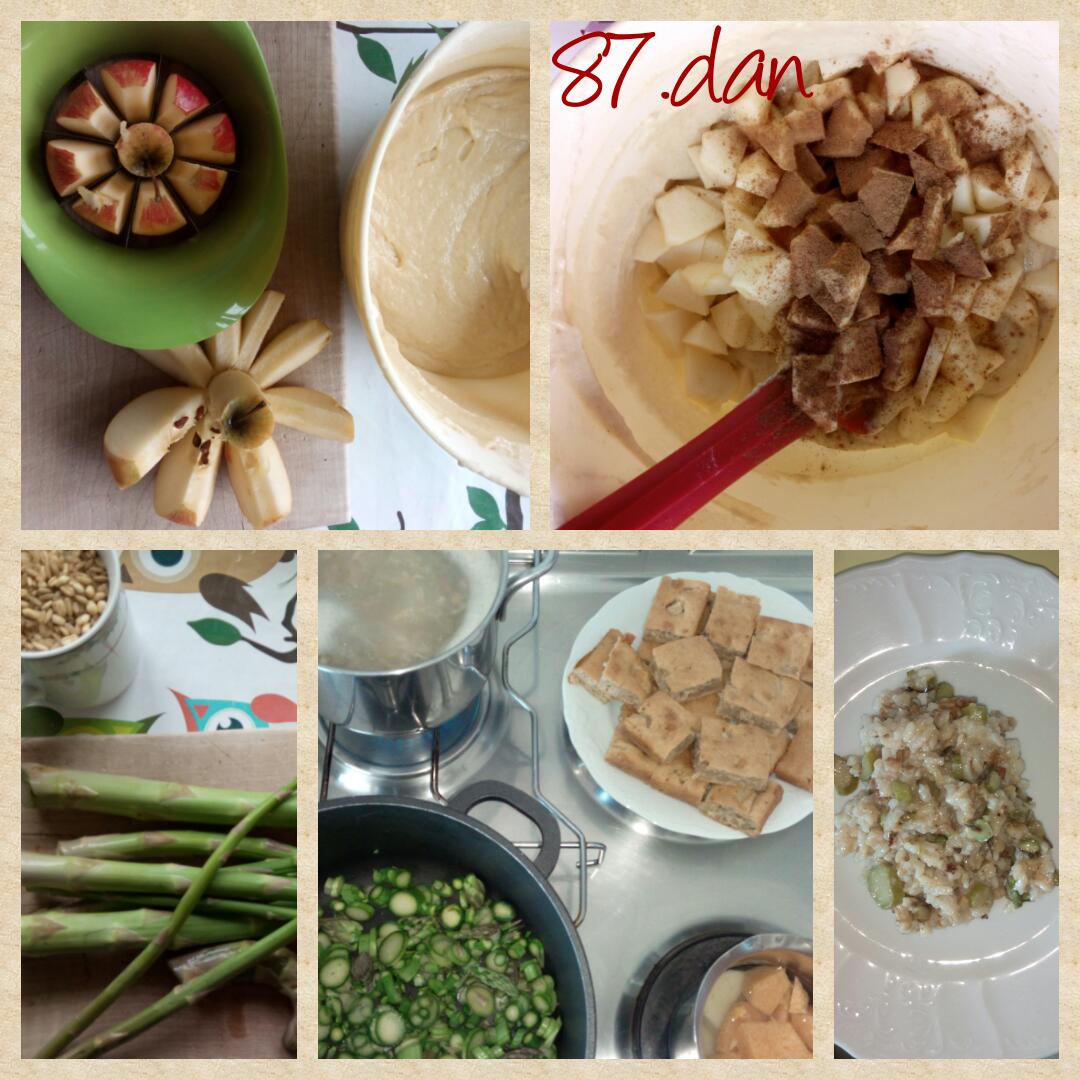 * Rižota s šparglji: Riž sem skuhala v slani vodi (pol skodelice mešanice ‘3 žita’ in pol skodelice riža). Šparglje sem popekla na maščobi in nato dodala riž. Moji so si naribali še parmezan.