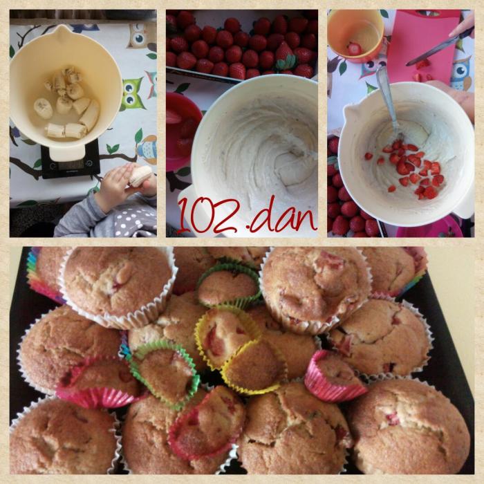 Dež nas je zadržal v hiši, zato smo se zabavali z bananinimi kolački s koščki jagod.