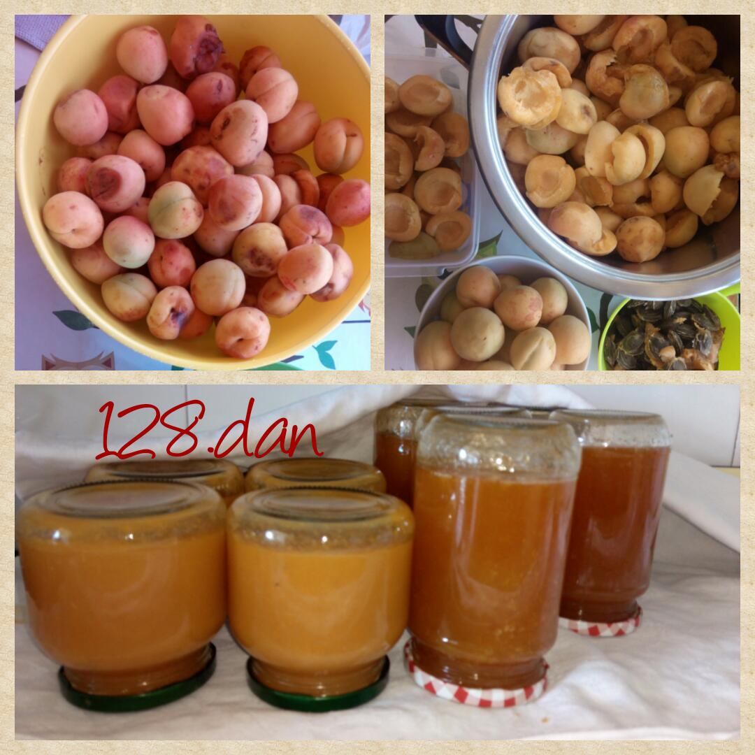 Skuhala sem tudi kašico in marmelado iz včerajsnih marelic. Nekaj marelic pa sem dala (brez košice) v skrinjo za sprotne kašice za mini.