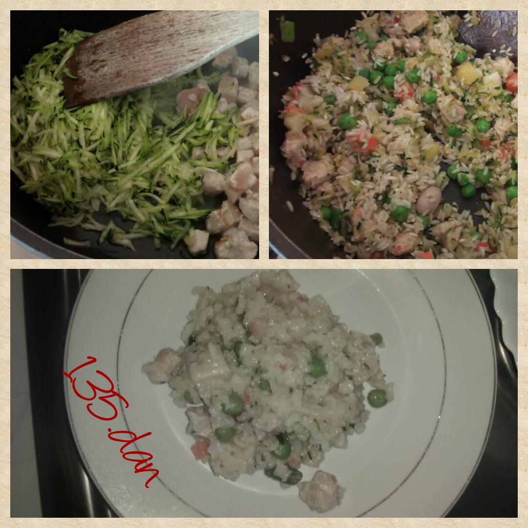 – rižota (svinjsko meso, bučka, mešana zmrzjena zelenjava) in