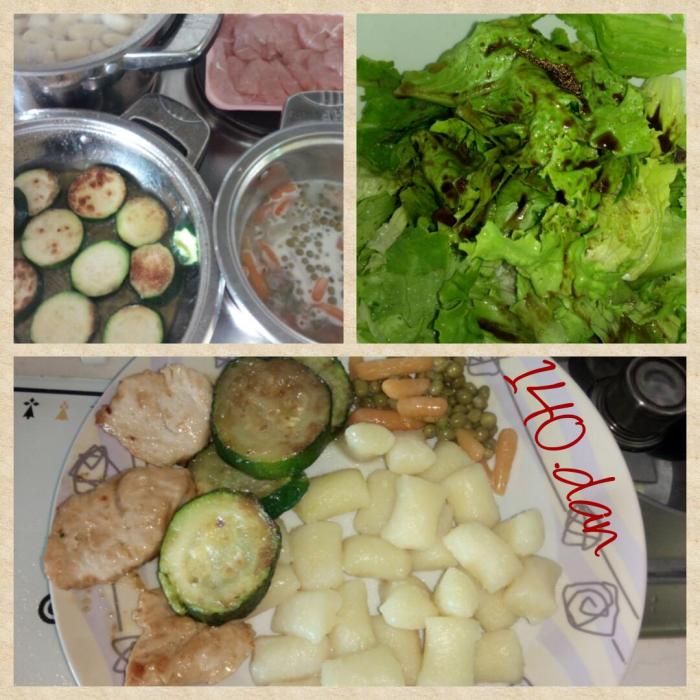 – kosilo: na oljčnem olju popečene bučke in puranji medaljon z rižem.
