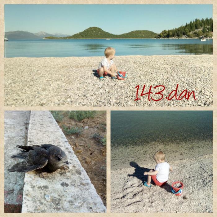 Na jutranjem sprehodu sva z Jurijem rešila ptička s ceste, nekako se nisva mogla odločit, katere vrste je, glede na barvo in velikost bi lahko bil galeb?! Ampak kljun?! V vodo sva spet zmetala nekaj kamnov in kupila krofe za zajtrk. 😉