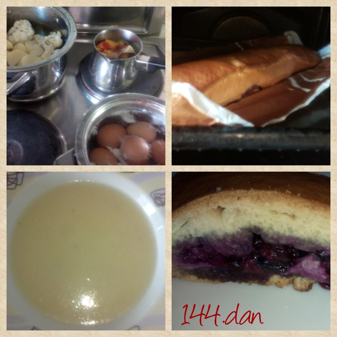 – ‘štrudelj’ iz kvašenega testa (kupila pomotoma namesto listnatega) s skuto in borovnicami.