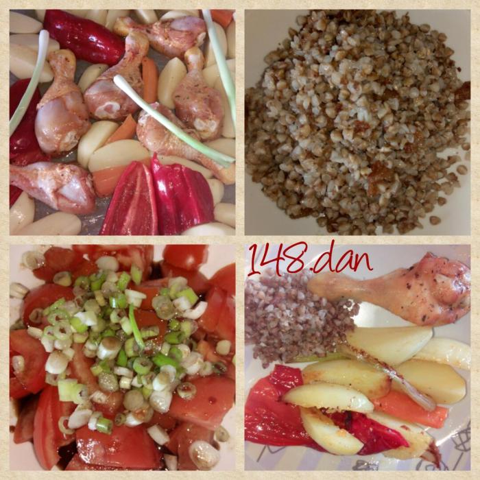 – kosilo: ajdova kaša s korenčkom, piščančjim mesom in na oljčnem olju popečeno bučko.