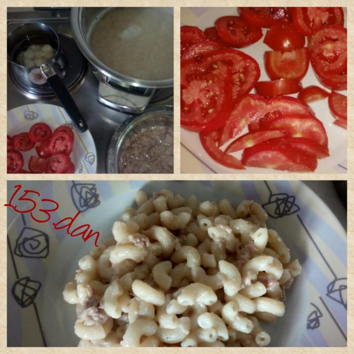 Za kosilo sem razvesila moja mladička z eno od njunih top jedi. Makaroni. 🙂 Saj ne, da si v gostilni skoraj vedno naročita testenine.