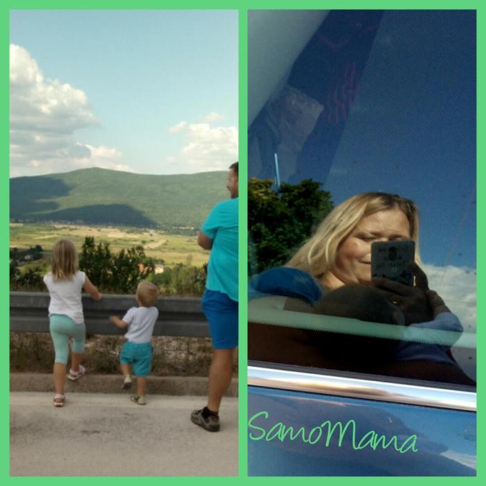 Bližje smo domu, težje je. Jurij in Hana zdolgočasena, preutrujena, da bi spala. Meni glava poplesuje. Mini spančka. Oči kot rožica.