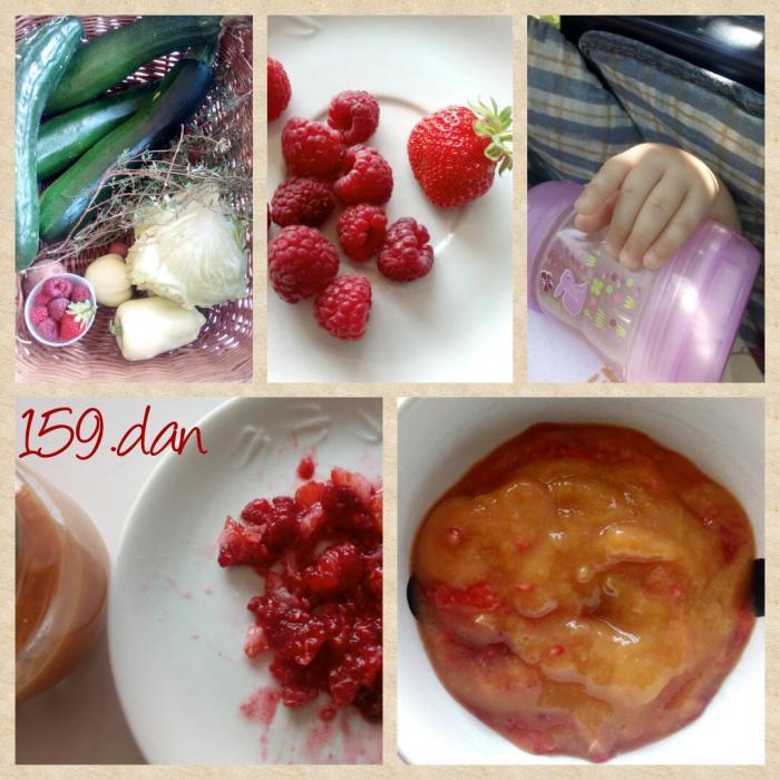 – malica: pretlačen kompot iz jabolka in breskve in sveže maline in jagoda.
