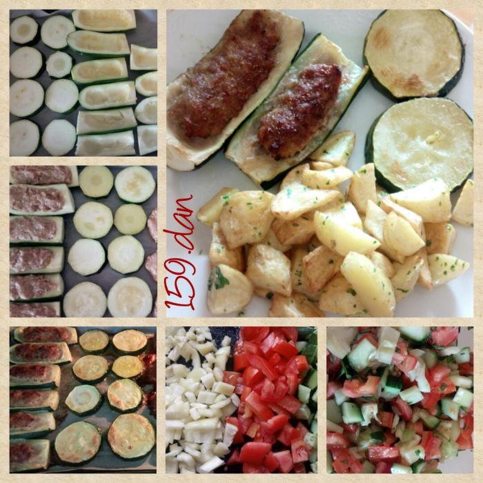 – polnjene bučke z mletim mesom (pečene v pečici),