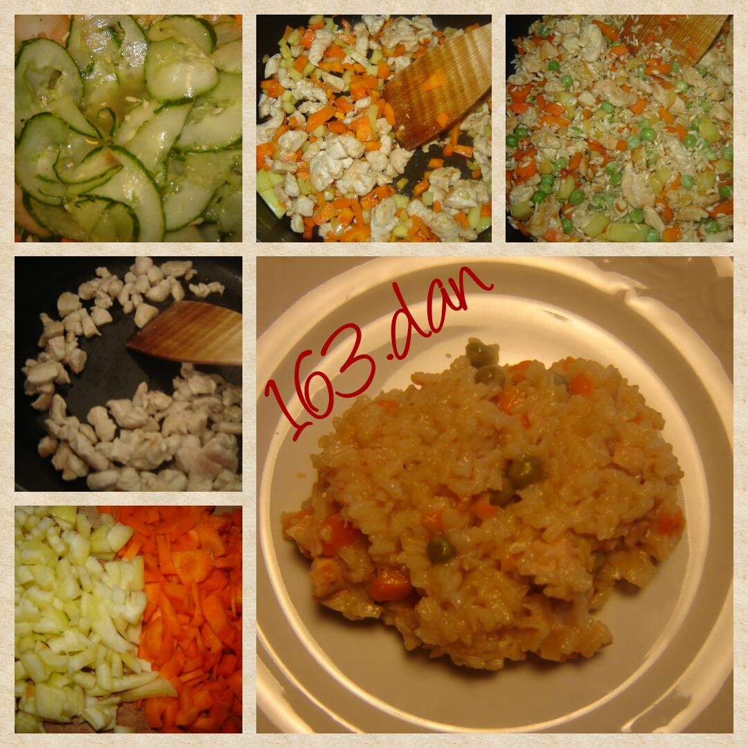 – rižota (puranje meso, rumena paprika, korenje, grah in riž 😉 )