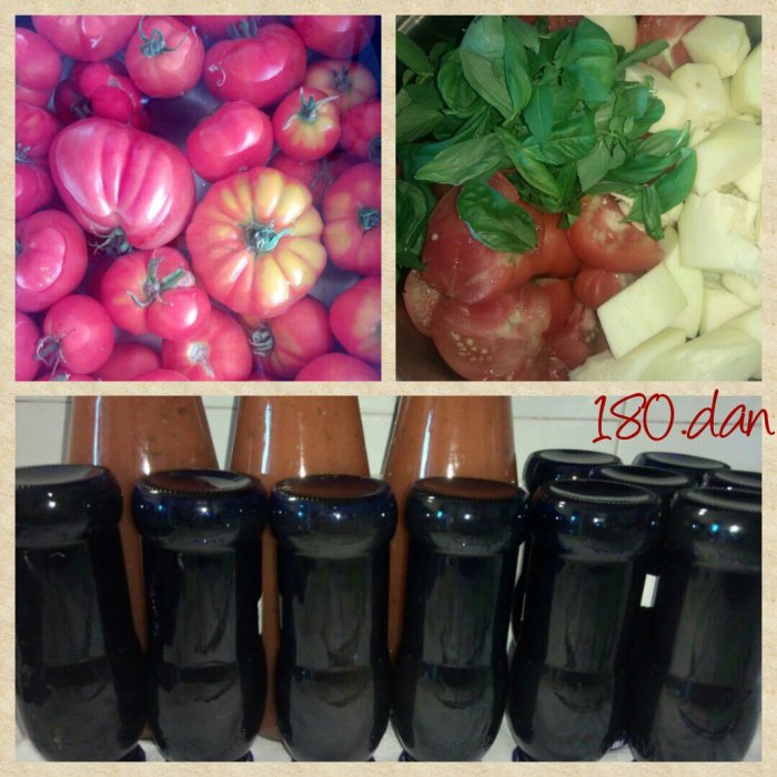 Današnje muhasto vreme sem izkoristila za vkuhavanje paradižnikove omake, danes z bučo, ki je prerasla za običajno uporabo ;).
