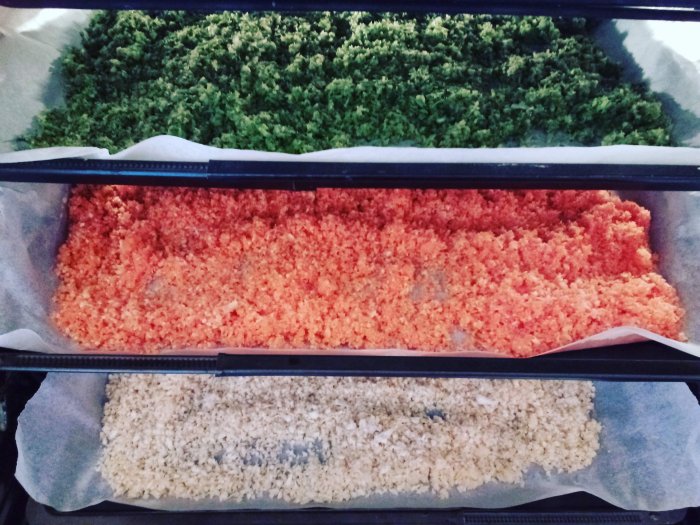 Posušeno zelenjavo dajem sproti v kozarec. Ko posušim vso zelenjavo, jo enakomerno premešam in še nekaj ur sušim, da je res presušena.