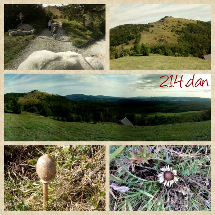 Luštn dan. Dopoldan sva z mini šli na plesni pilates, ki mu je sledil sprehod po trgovini in pot domov. Ravno sem se pripravljala kuhati kosilo, ko sem dobila sms: ‘A gremo za gobe pogledat?’ In sva šli z mini po velikana ter na izlet po gobe, oziroma bolj natančno po dežnikarice ali marele.
