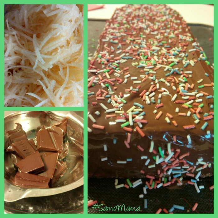 Kolač je sočen in zelo okusen. Premazala sem ga s stopljeno čokolado za kuhanje (100 g) in posula z mrvicami, a že brez tega je pecivo več kot odlično!