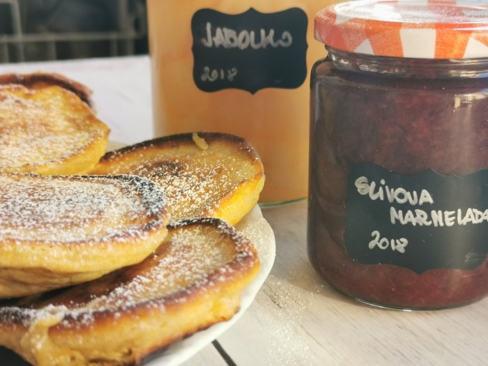 💡Namesto vročega sadja lahko uporabimo marmelado ali pa po palačinkah polijemo stopljeno čokolado.