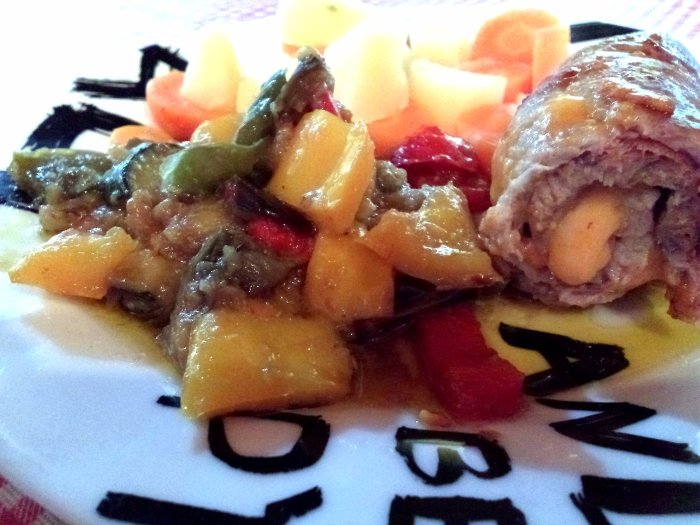 - mesna rolada (pršut in rezina sira zavita v svinjski zrezek)
