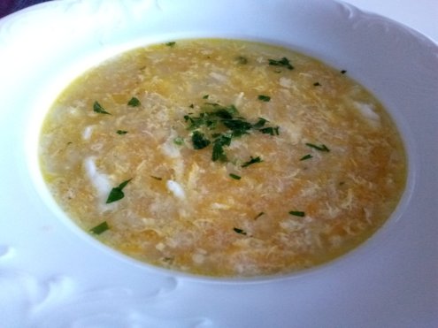 Riž z jajci in zelenjavo (riž, zelenjava, 4 jajca, začimbe): Riž in zelenjavo sem skuhala ter odcedila. Na olju sem naredila umešana jajčka ter jim dodala riž, zelenjavo ter začimbe. Navadno dodam še sojino omako, ampak mi je je očitno zmanjkalo.
