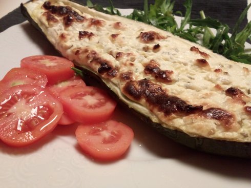 Polnjene bučke (šop drobnjaka, 500 g skute, mala kisla smetana, 2 jajca, 3 srednje velike bučke): Bučke sem z žlico izdolbila ter nasolila. Izdolbeno bučko sem narezala in dodala skuto, kislo smetano, nasekljan drobnjak, sol, 2 jajca ter premešala. Z maso sem napolnila bučke in pekla nekje 45 minut na 175°C.