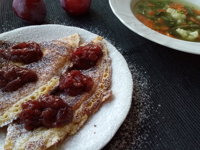 V skrinjo pa smo pospravili slivove knedle in narezane slive ter ringloje za pite.