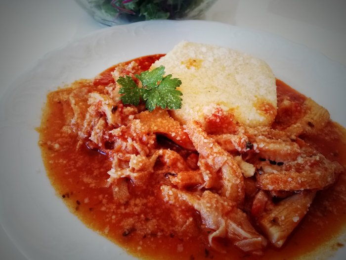 - Koščki piščančjega mesa v naravni omaki