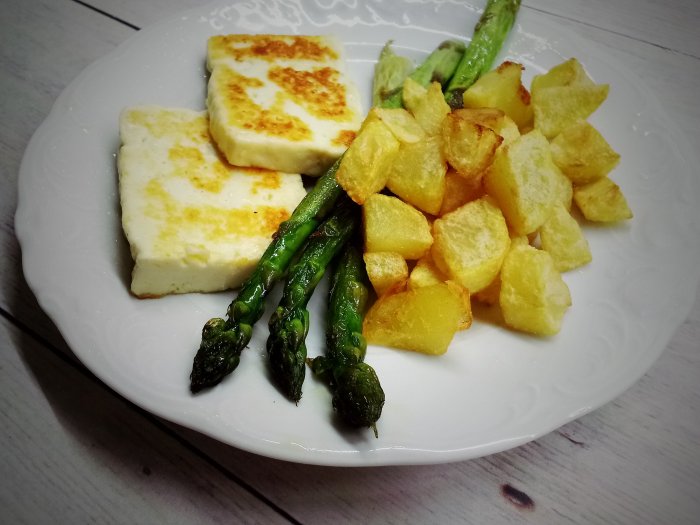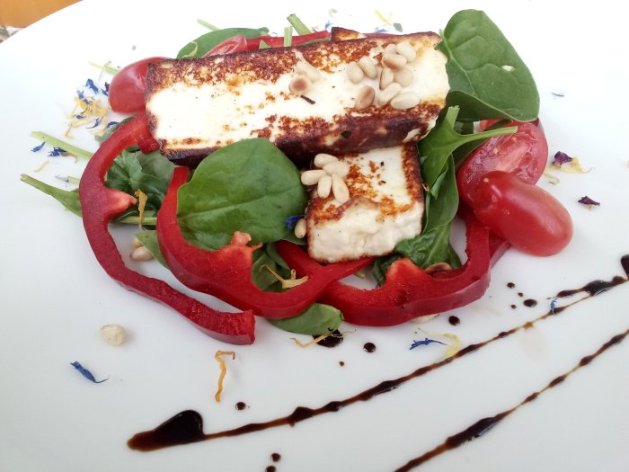 Po izletu na morju smo se ustavili v znani gostilni. Postrežba je bila obupna, hrana pa okusna. Sama sem si naročila popečen mladi sir, na mladi špinači s popečenimi pinjolami in zelenjavo.