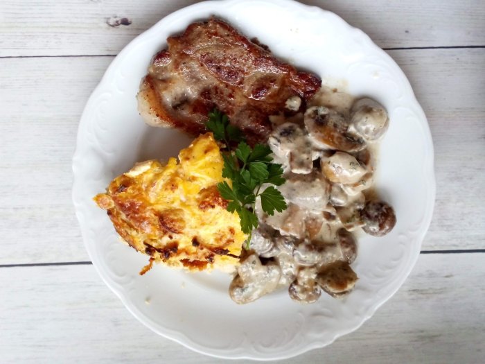 LCHF: zrezki iz govejih jeter, kajmak popečene bučke, zelena solata