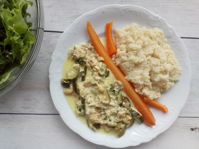 LCHF: omaka iz kokošjega mesa in bučk, zelena solata