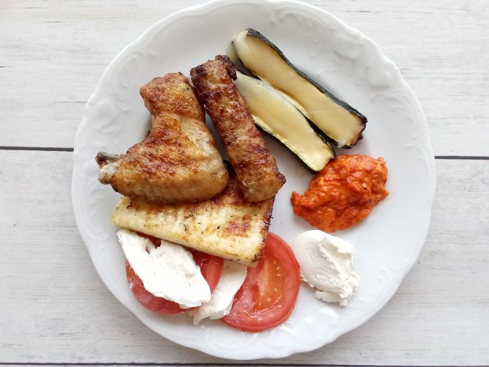LCHF: Pečen domač piščanec, pečene paprike, solata