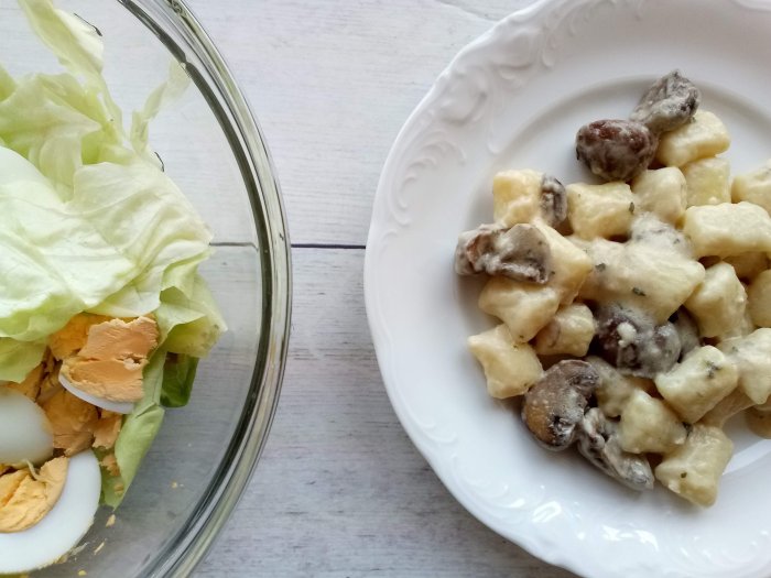 LCHF: Šampinjoni v smetanovi omaki, solata