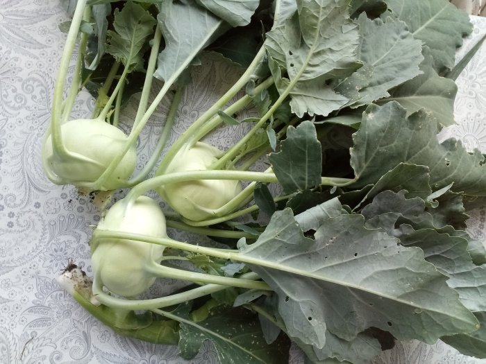 Kolerabina juha: kolerabo sem olupila, narezala in na maslu popekla. Zalila sem z vodo, začinila in pokuhala. Spasirani juhi sem dodala smetano.