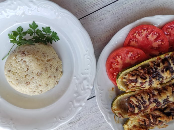 LCHF : polnjene bučke z mletim mesom in sirom in paradižnik