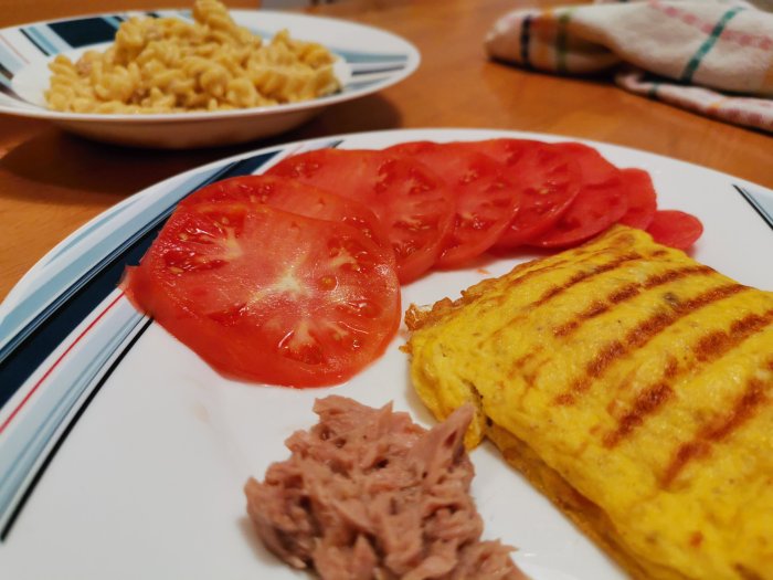 LCHF : omleta polnjena s tuno in sirom, paradižnik