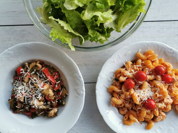 LCHF : piščančje meso z vrtno zelenjavo (Bučka, paprika, malancani), solata