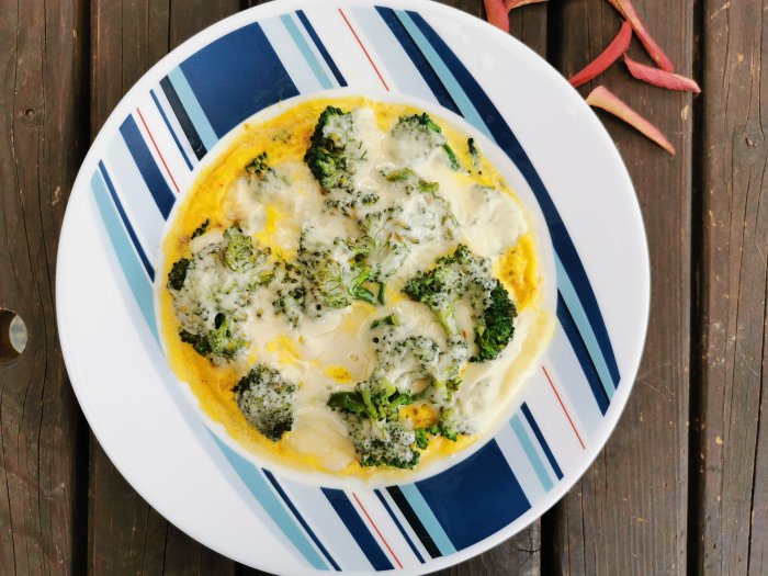 - Gratiniran brokoli po taborniško (ker nimam pečice v kampu, sem ga ‘gratinirala’ nad vročo kopeljo)