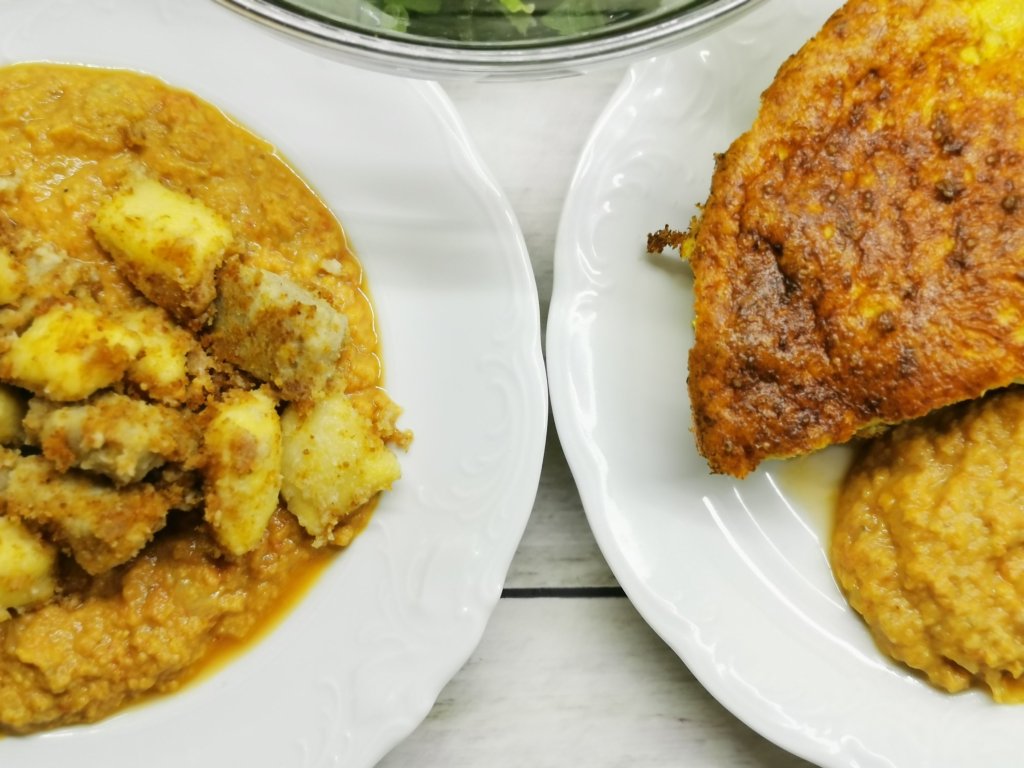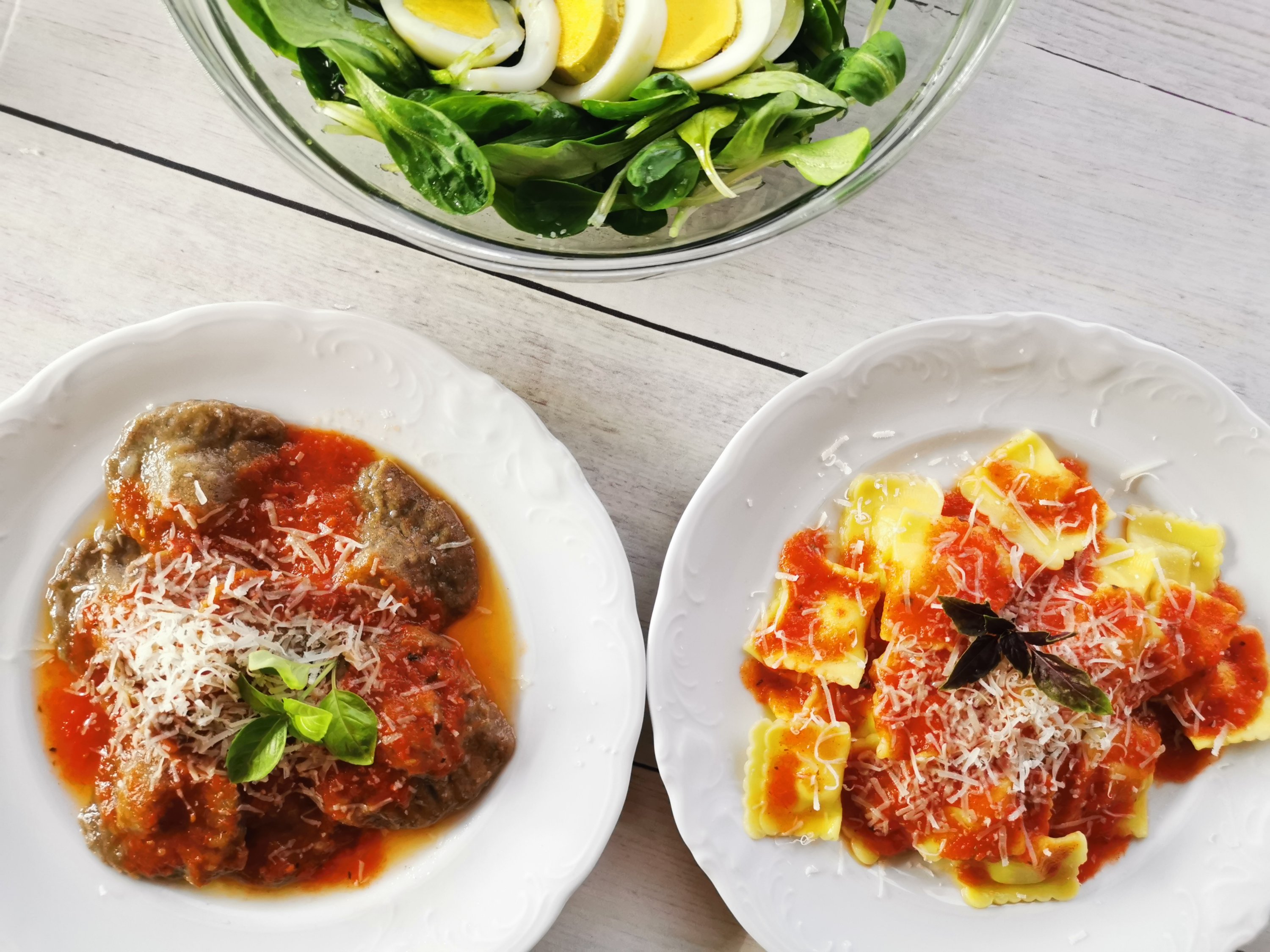 💡Omaka iz piščančjega mesa: piščančje meso iz juhe je Matej razkoščičil in zmlel. Nasekljano čebulo sem prepražila, dodala česen in mleto meso, zalila sem s paradižnikovo omako, dodala malo gorčice in pokuhala. Začinila sem z zeliščno soljo Fina Isolana.