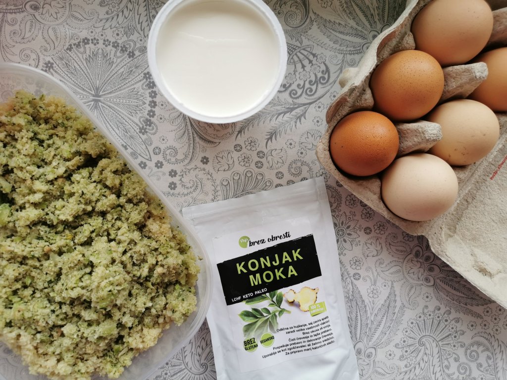 Cvetačo zmeljemo. Jajca, sol, kislo smetano ter konjak moko dobro premešamo v gladko zmes in ji dodamo cvetačo. Pustimo počivat 1 uro, da se konjak moka dobro veže.