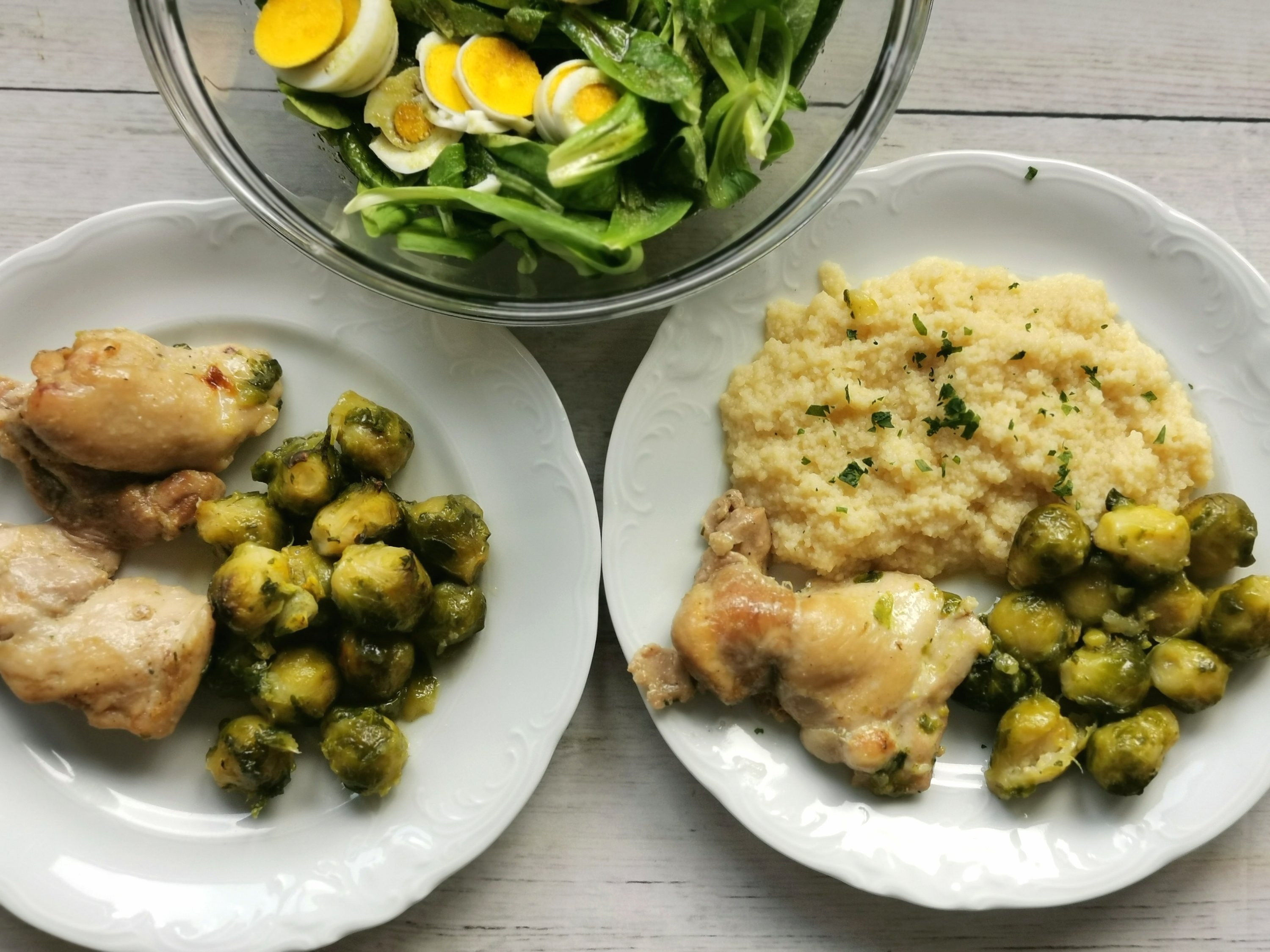 LCHF : Piščančje prsi z malancani in paradižnikom, motovilec z jajčko