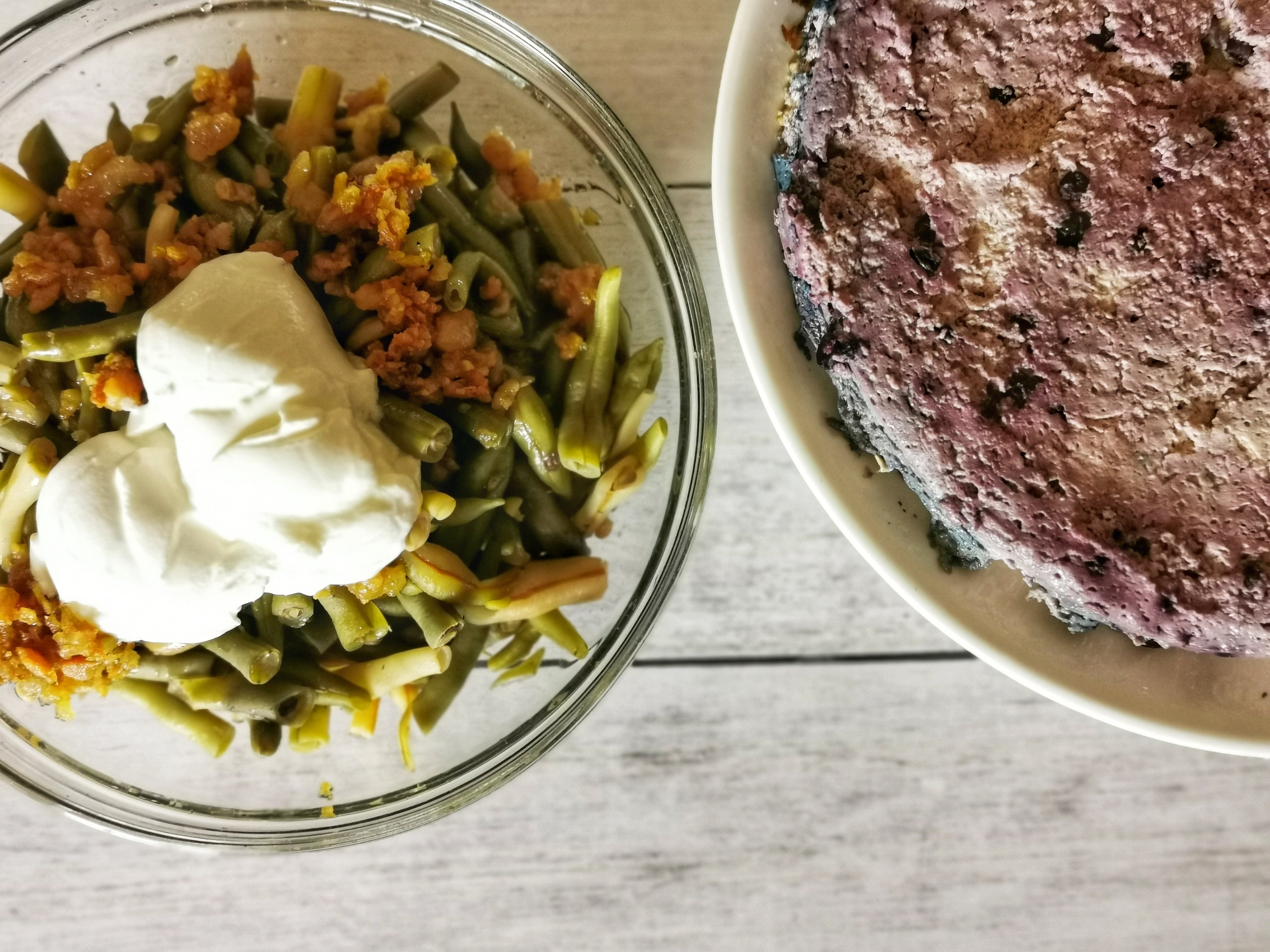 LCHF : stročji fižol z ocvirki in kislo smetano, štrudelj, ki to ni