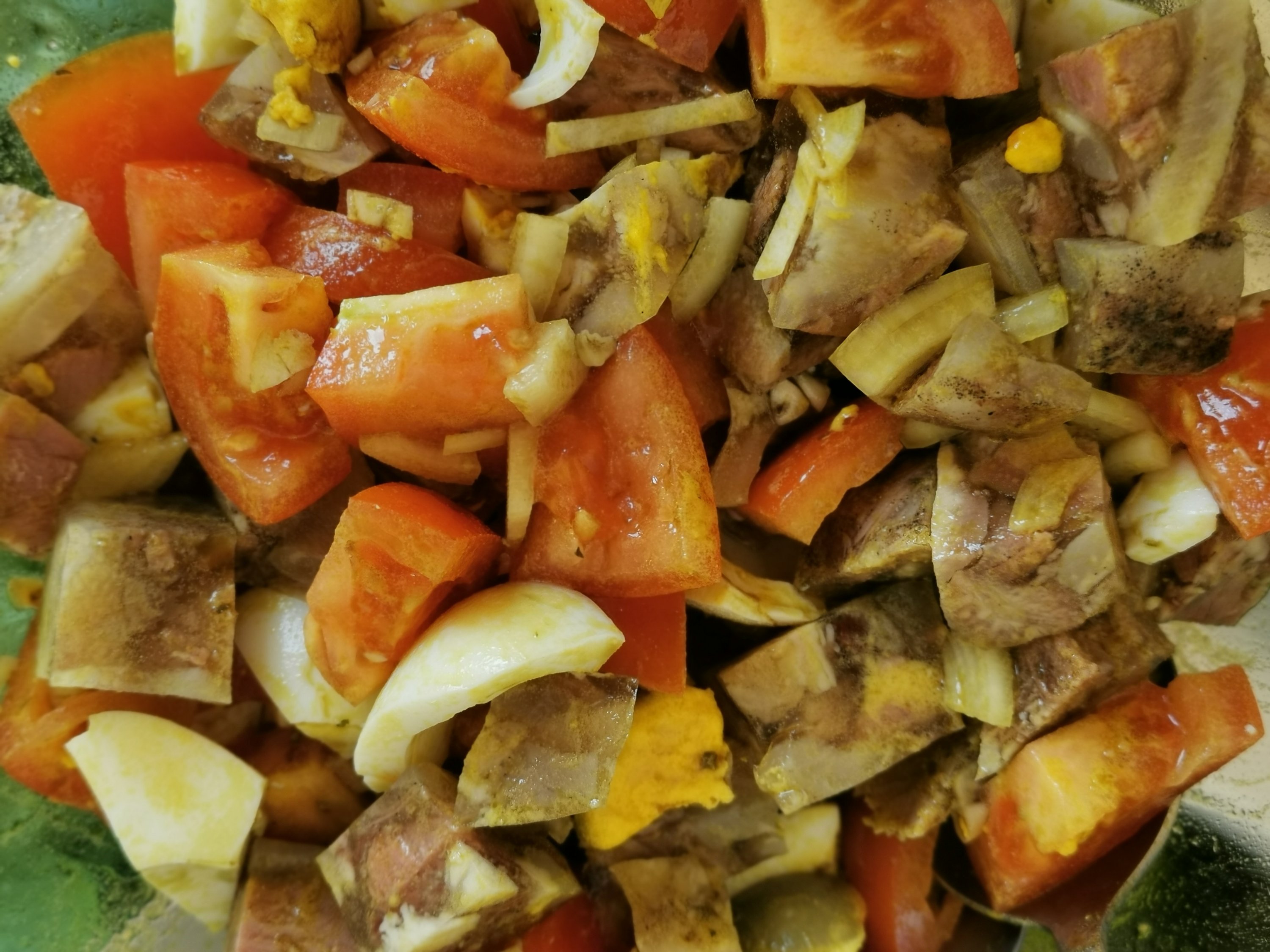 LCHF : solata iz tlačenke, jajc, paradižnika in čebule