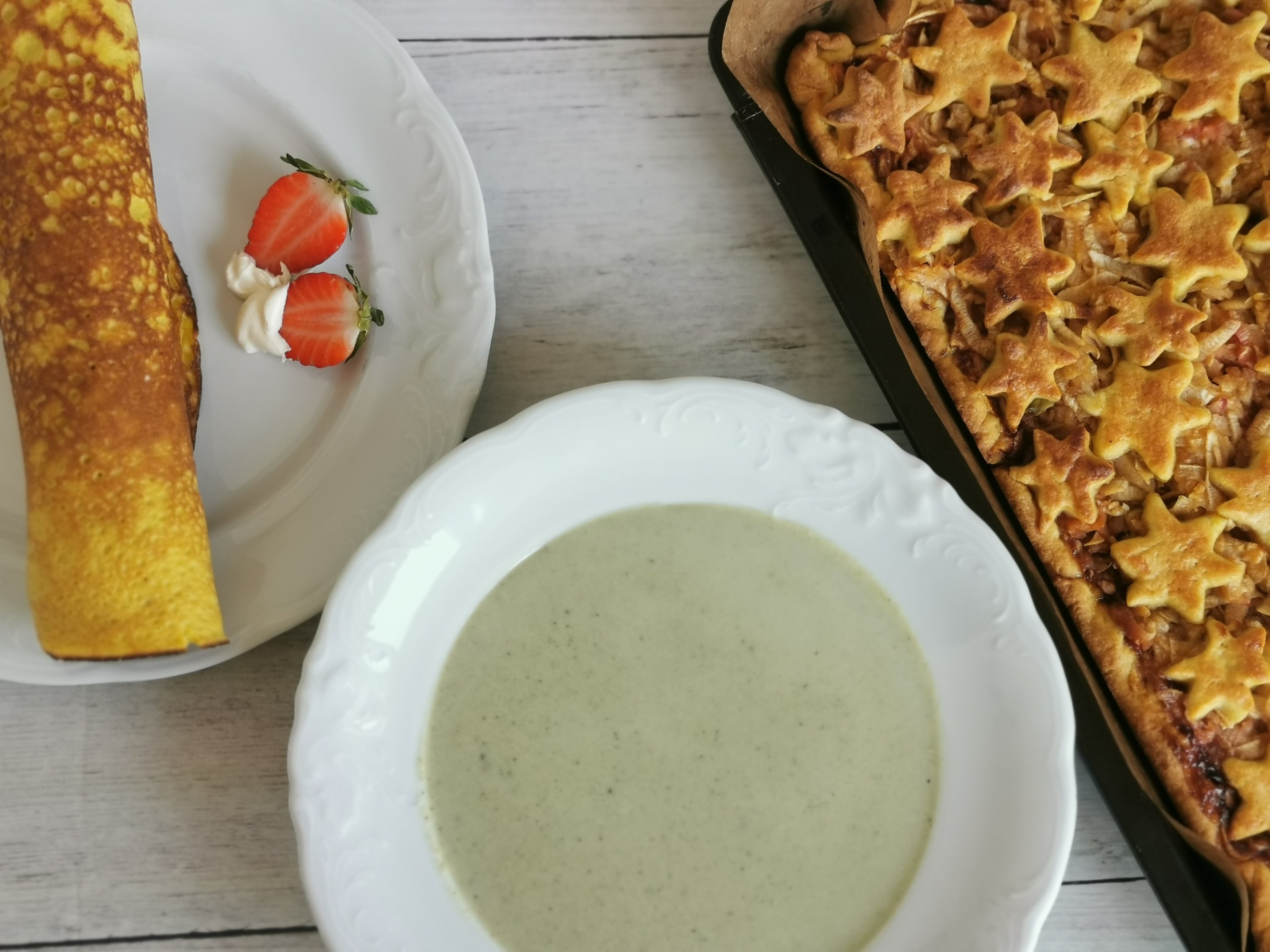 LCHF : brokolijeva juha, debele #LCHF palačinka z maskarponom in jagodami