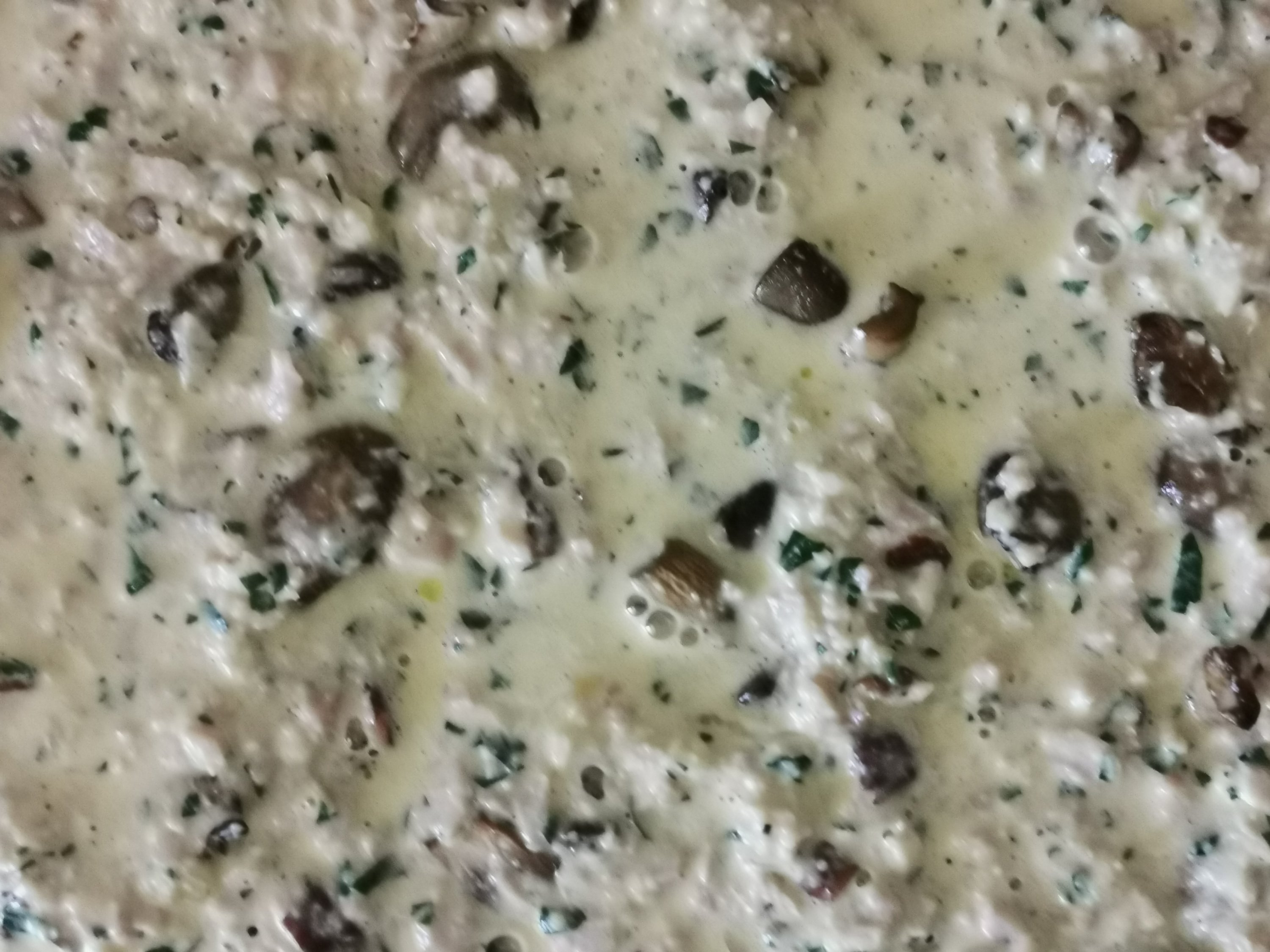 Čebulo nasekljamo in jo prepražimo, dodamo nasekljan česen ter na drobno narezano šunko, solimo in zalijemo z malo vode. Pustimo, da se čebula razpusti, nato zalijemo s smetano, odstavimo z ognja in ohladimo. V ohlajeno ‘omako’ vmešamo jajci in peteršilj.