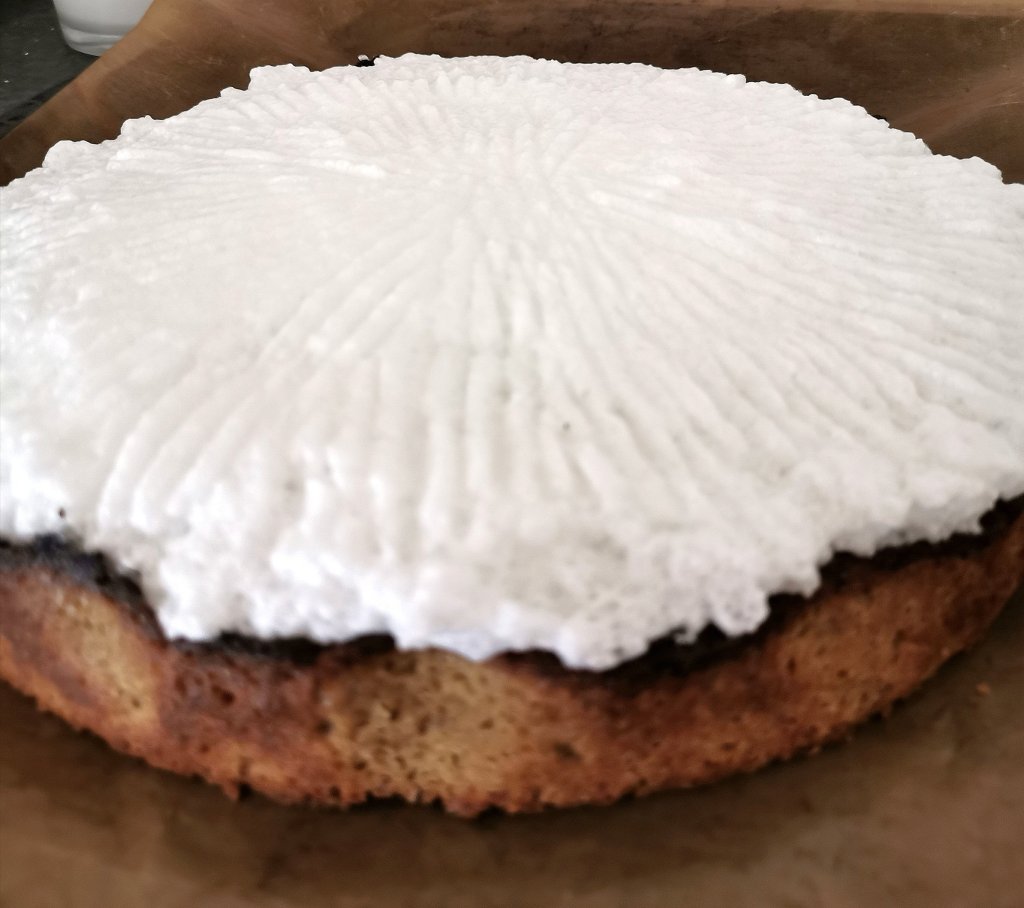 Beljake, sol in eritritol nad vodno kopeljo pasteriliziramo (temperatura beljakov mora biti 65 °C). Če nimamo termometra, si lahko pomagamo tako, da prst pomočimo v beljake, če je dovolj toplo nas bo speklo.