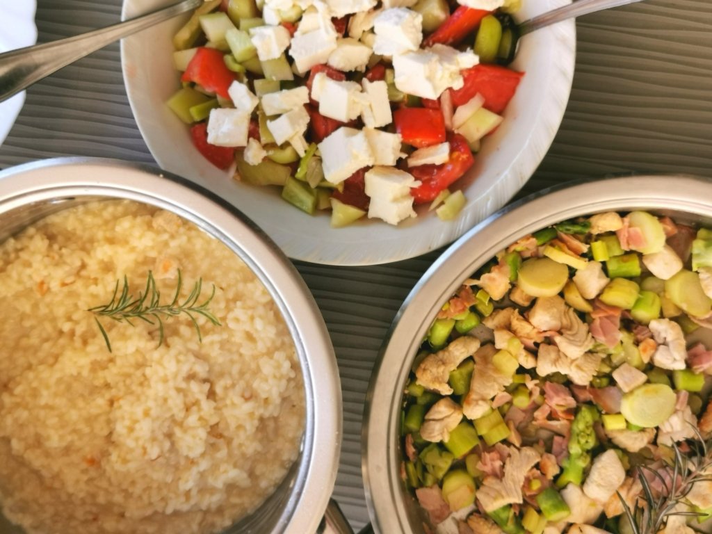 LCHF: Popečeni šparglji s puranjim mesom in slanino, šopska solata