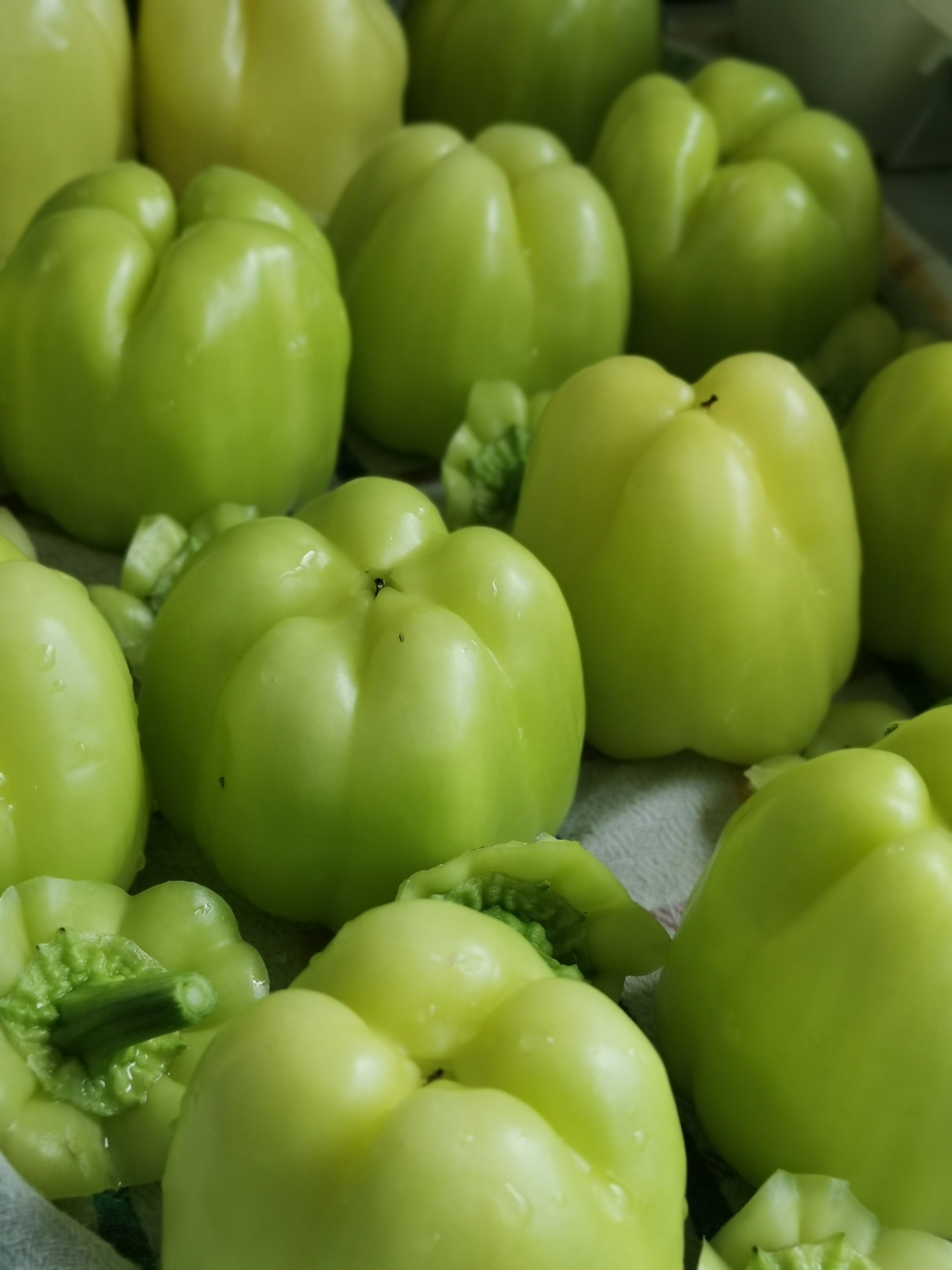 💡 Za polnjene paprike ne uporabljam riža, temveč naribane bučke: 500 g čebule in 500 g naribanim bučk sem dušila vsaj pol ure, dodala česen in ohladila, nato sem dodala 750 g mletega mešanega mesa in 2 jajci, ter 1 žlico sezamove moke. Vse skupaj sem premešala in napolnila paprike.