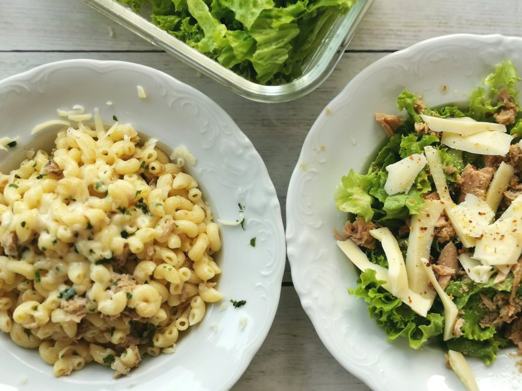 LCHF : solatni krožnik: zelena solata, sir, tuna, čili, oljčno olje
